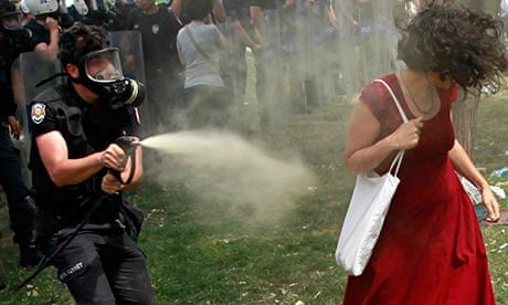 In pochissimi giorni, tuttavia, la natura della protesta ha cambiato completamente pelle. Ciò perché, dopo alcune affermazioni da parte di Erdoğan, la polizia ha reagito in modo durissimo contro i manifestanti. C'è una foto, "la ragazza dal vestito rosso" che ha svegliato le coscienze di moltissimi giovani turchi. Si tratta di una ragazza, completamente inerme, cui viene sparato a distanza ravvicinatissima un getto d'acqua da un poliziotto. Ci sono stati anche studi sulla potenza di quell'immagine: alcuni professori universitari sostengono che quella sia stata la miccia della vera protesta.